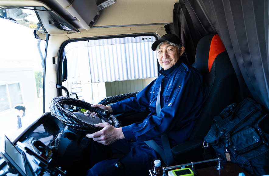 帰りは廃砂を回収し、自社倉庫に持って帰ってくる運行です。